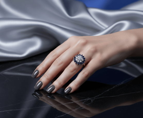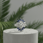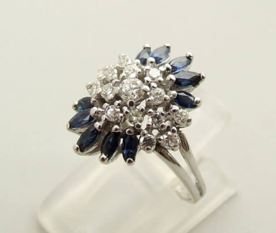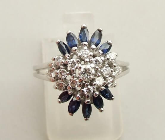 Deze gouden diamanten ring met saffier is een schitterend sieraad dat direct in het oog springt.