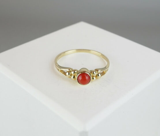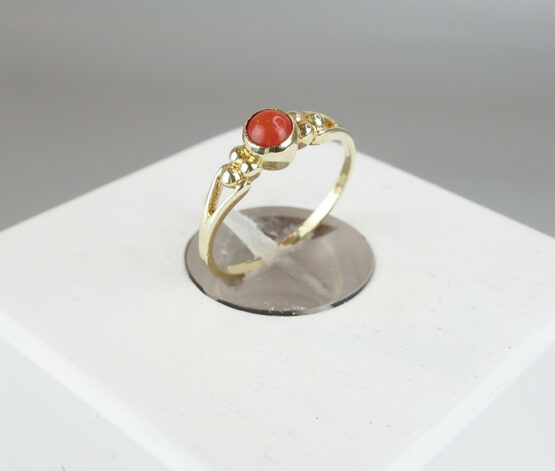 Deze 14 karaat ring met bloedkoraal is een prachtig sieraad om te dragen.