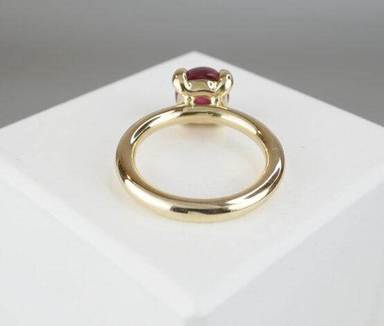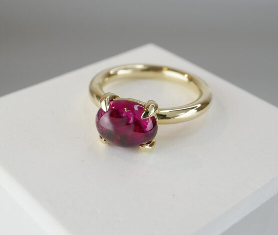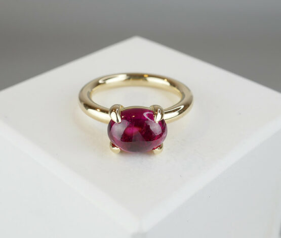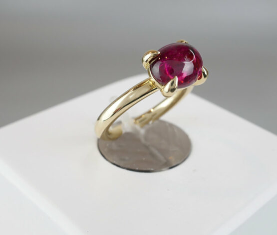 Geen edelsteen heeft een kleurenrijkdom als toermalijn. Echte, intensief rode toermalijn is het meest gewild in de wereld van sieraden. Toermalijn komt voor in verschillende kleuren, maar alleen bij de rode en groene variant is de lichtstreep scherp. Rode toermalijn staat voor energie, levenslust en passie. Het mooie van deze edelsteen is dat het een sterke indruk maakt en de drager siert. Draag deze schitterende geel gouden ring met bijzondere edelsteen. De steen heeft een glasachtige glans in deze ring en deze prachtige steen fonkelt schitterend in het zonlicht. Het woord ‘toermalijn’ betekent ‘edelsteen met verschillende kleuren’. Het is al eeuwenoud een gewaardeerde steen vanwege zijn kleurenvariatie.