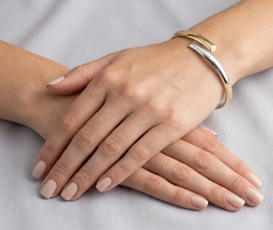 Draagt u graag bicolor sieraden? Bestel uw 14 karaat bicolor slavenarmband halfrond modeldirect via atelierchristian.nl!