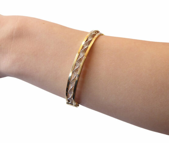 De bicolor gouden slavenarmband is een prachtig sieraad om te dragen.