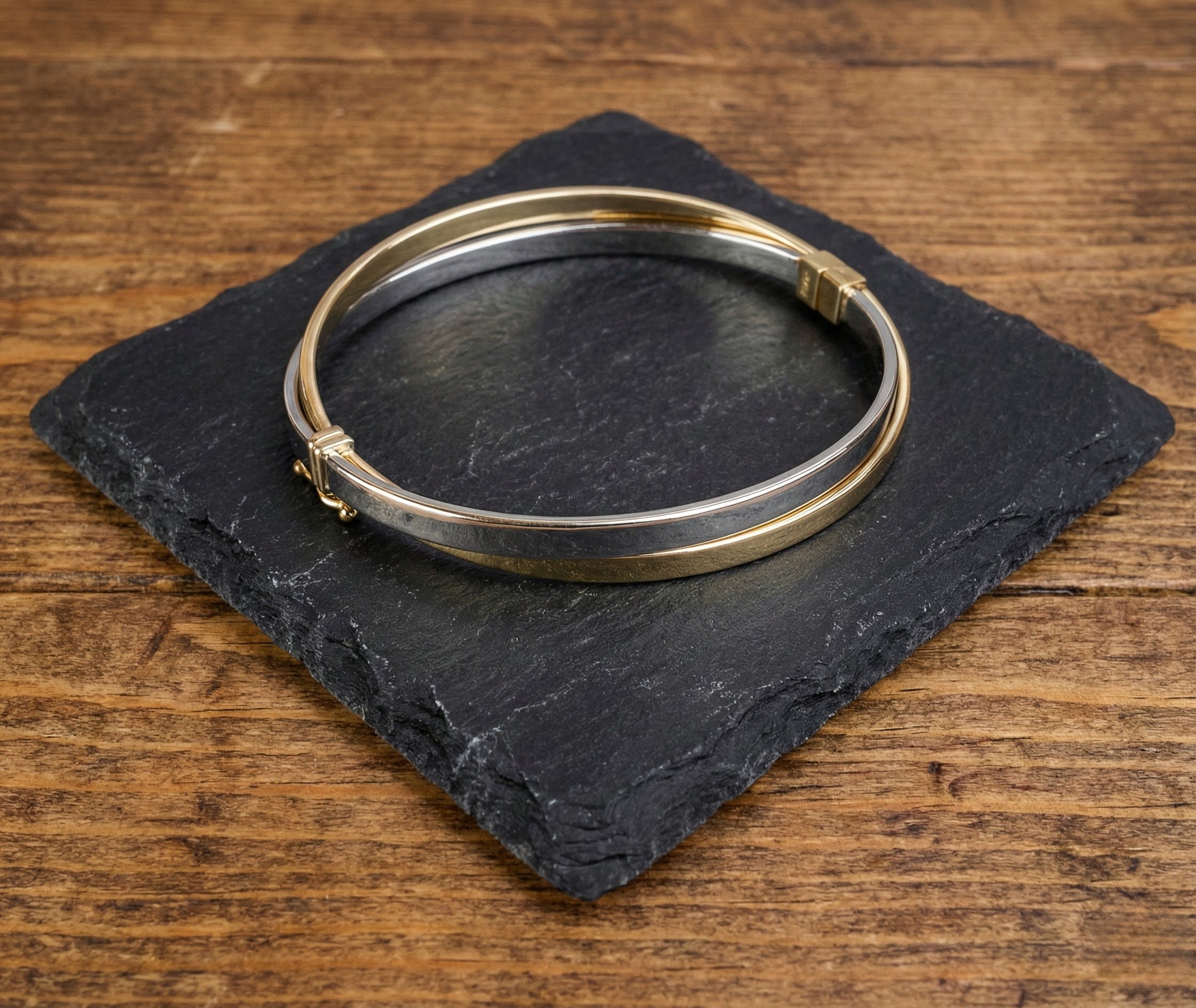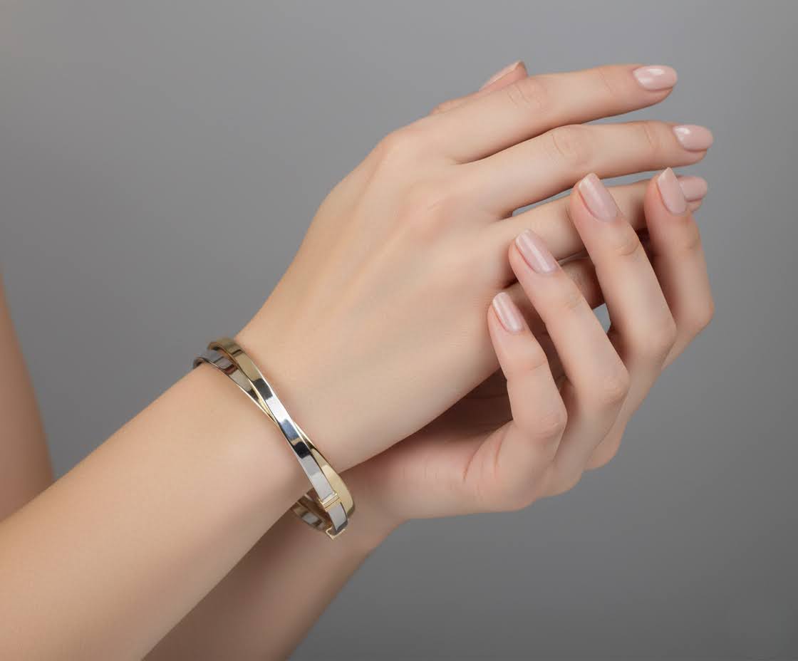 Draagt u graag slavenarmbanden? Bestel uw Christian wit en geel gouden slavenarmband direct via atelierchristian.nl!