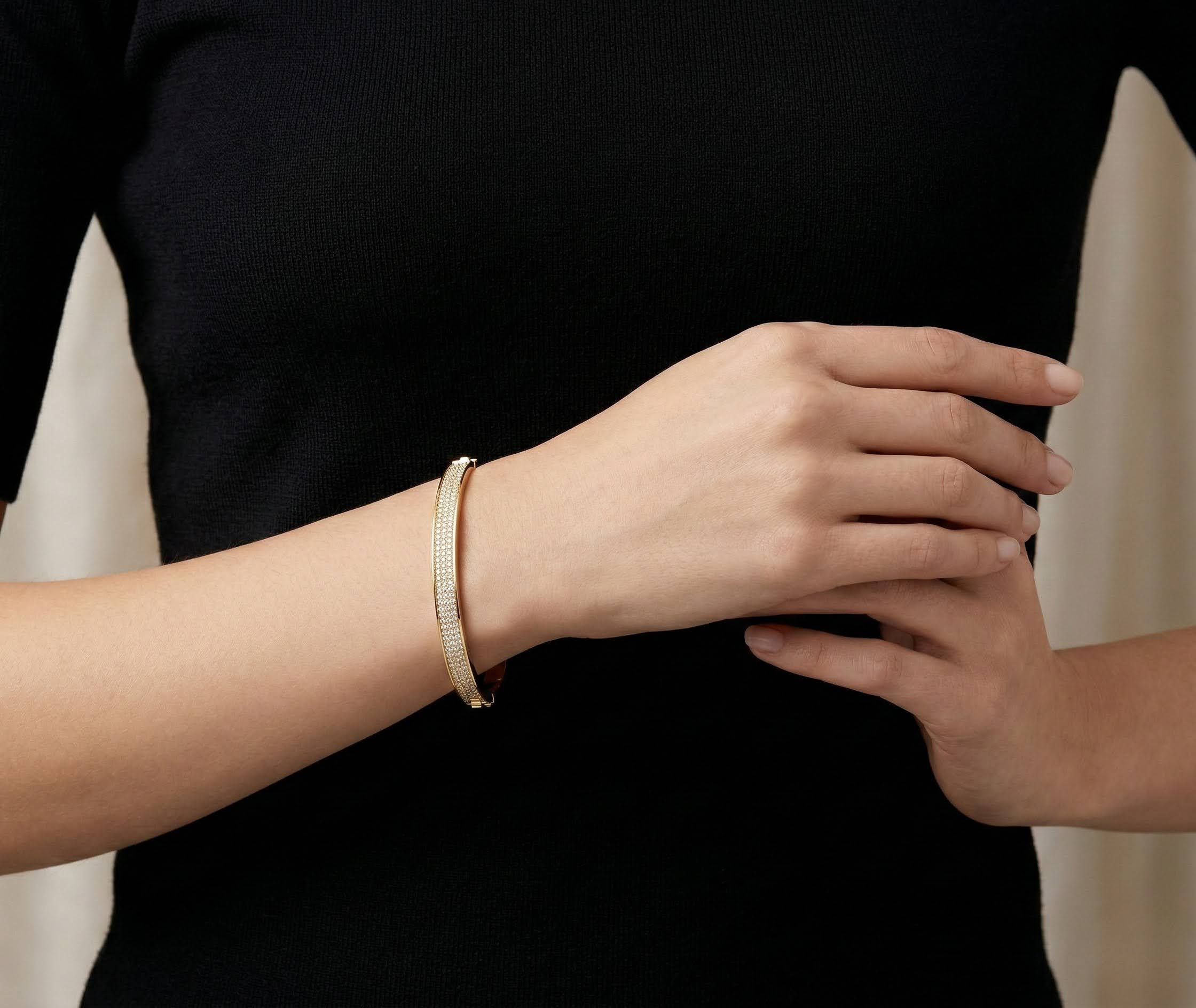 De geel gouden zirkonia slavenarmband is een prachtig sieraad om te dragen. Slavenarmbanden zijn zeer populair.