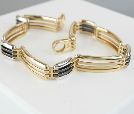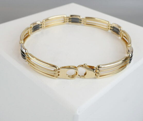 De 14 karaat bicolor armband met onyx is een prachtig sieraad om te dragen.