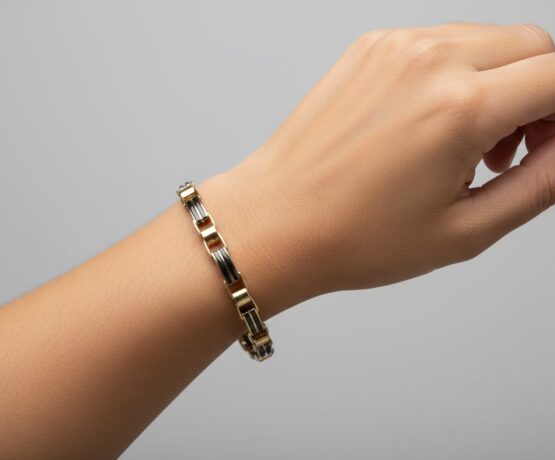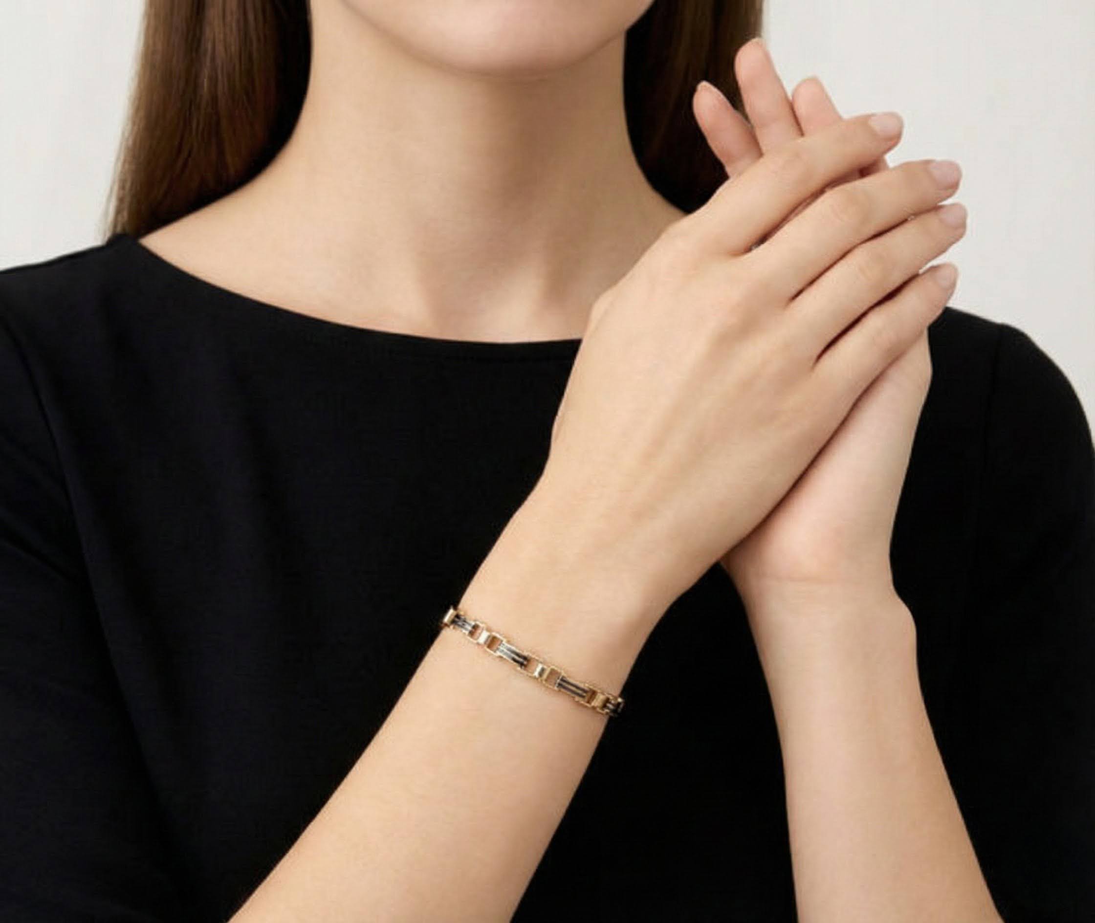 De 14 karaat massieve bicolor armband is een prachtig sieraad om te dragen.
