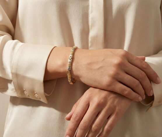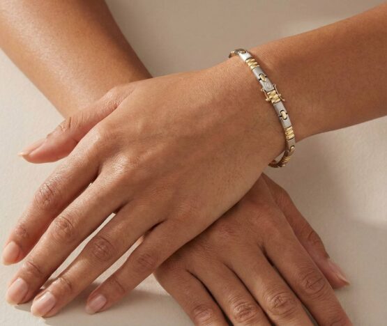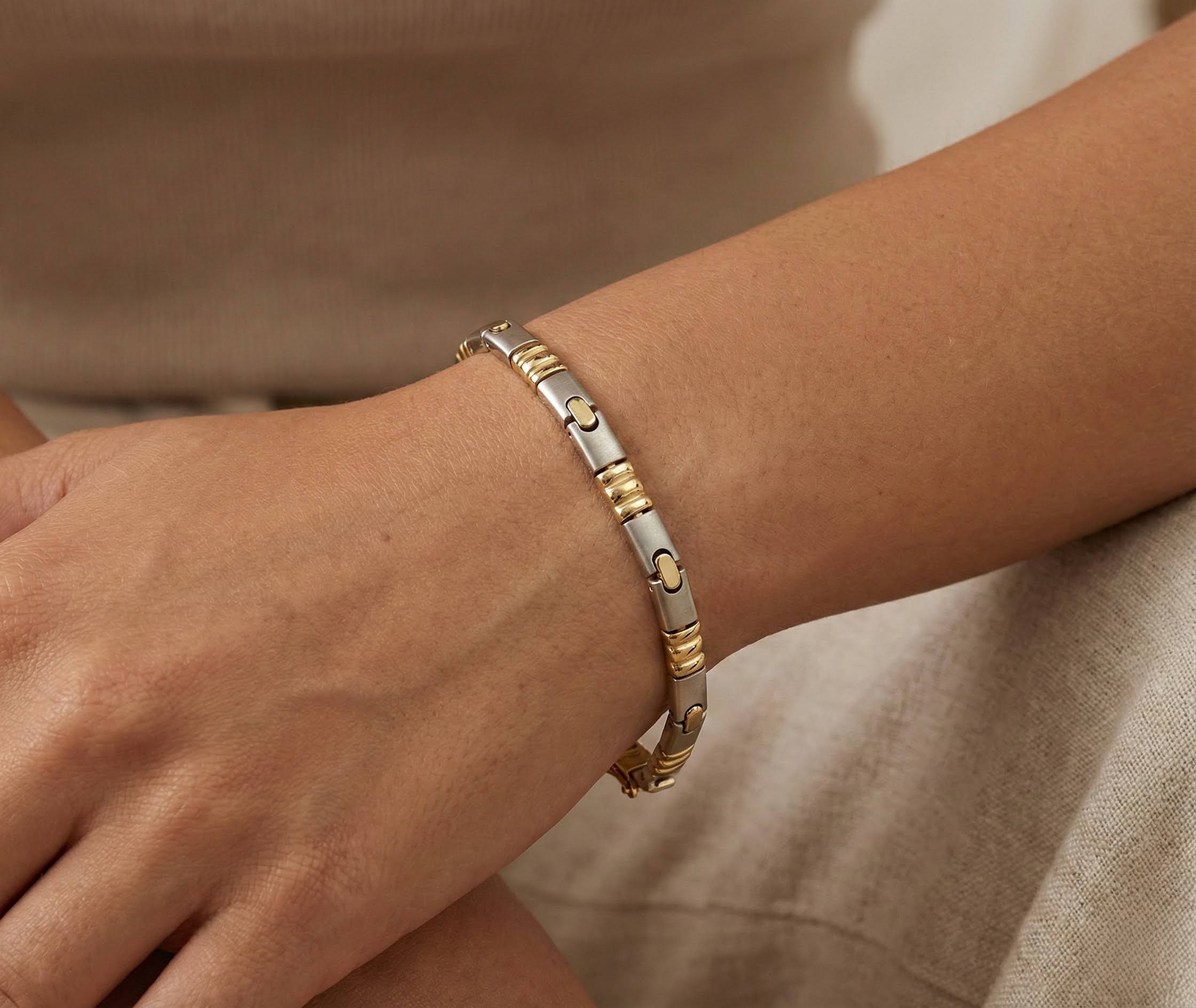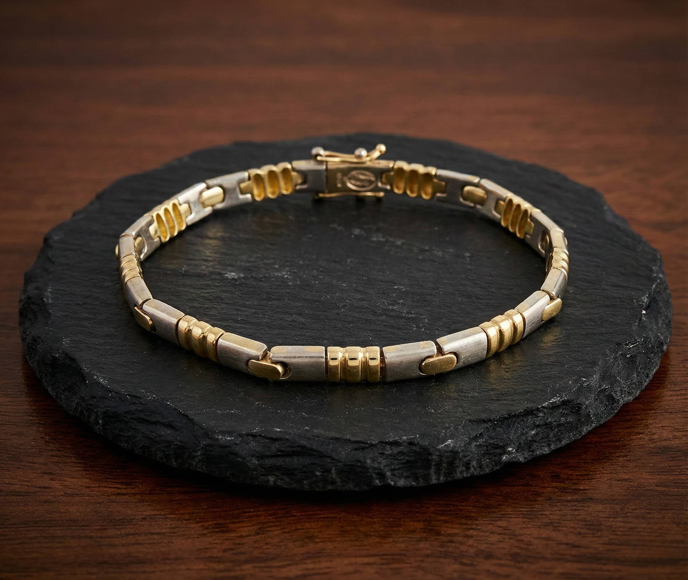 De bicolor schakelarmband speciaal motief is een prachtig sieraad om te dragen.
