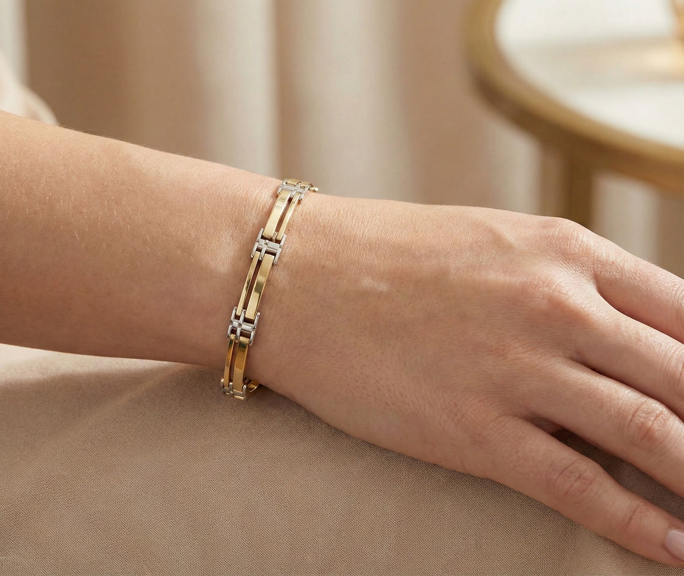 De Christian bicolor gouden schakelarmband is een prachtig sieraad om te dragen.