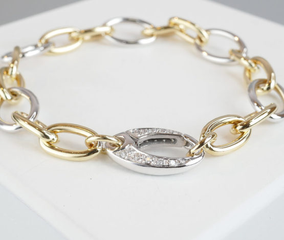 Draagt u graag sieraden met geel- en wit goud? Bestel uw Christian 14 karaat gouden armband met briljanten slot direct via atelierchristian.nl!