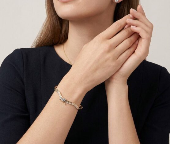 De gouden bicolor slavenarmband golvend model is een prachtig sieraad om te dragen. Slavenarmbanden zijn zeer populair.