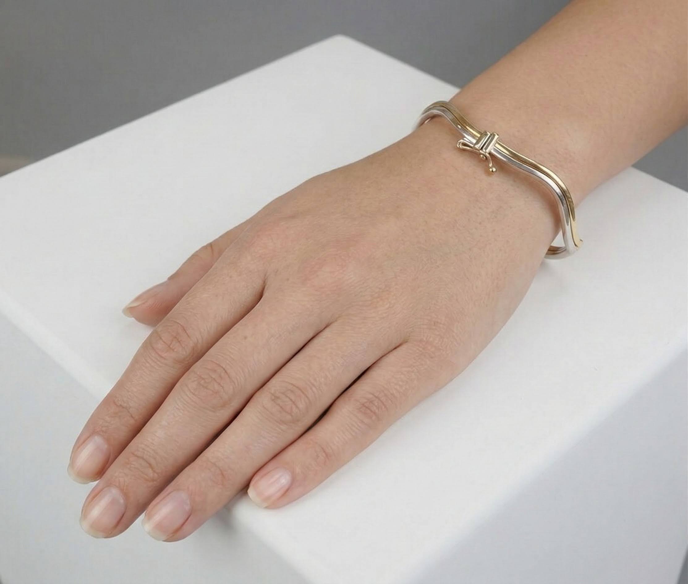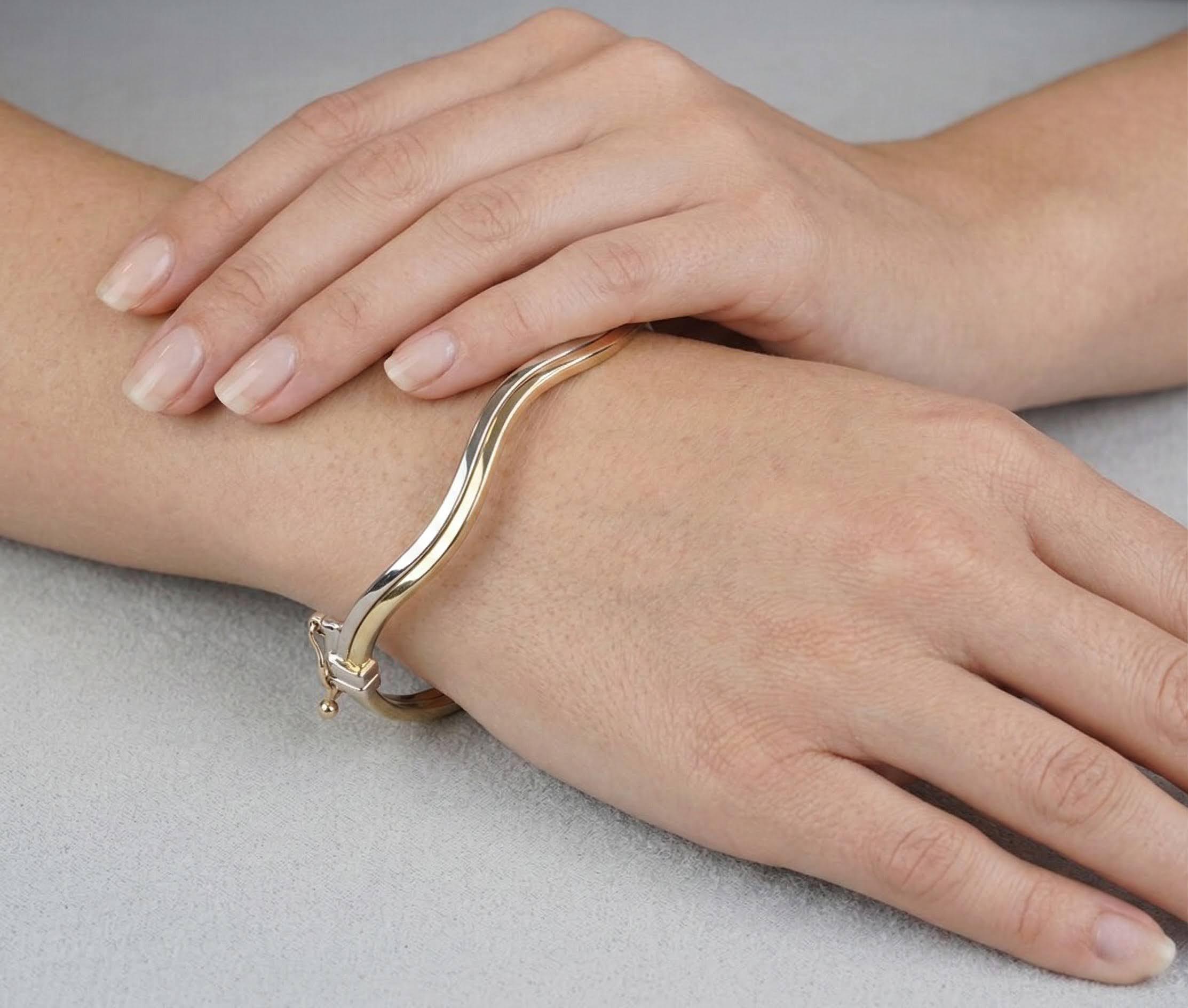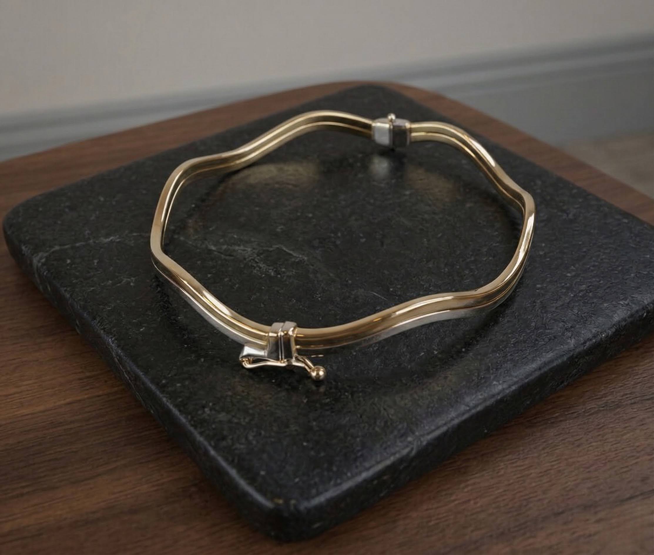 De gouden bicolor slavenarmband golvend model is een prachtig sieraad om te dragen. Slavenarmbanden zijn zeer populair.