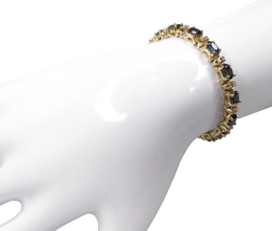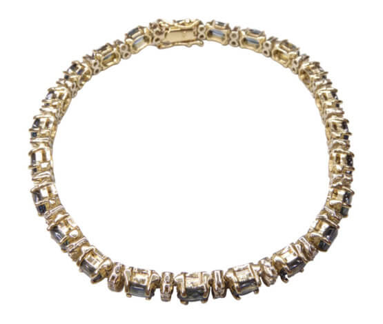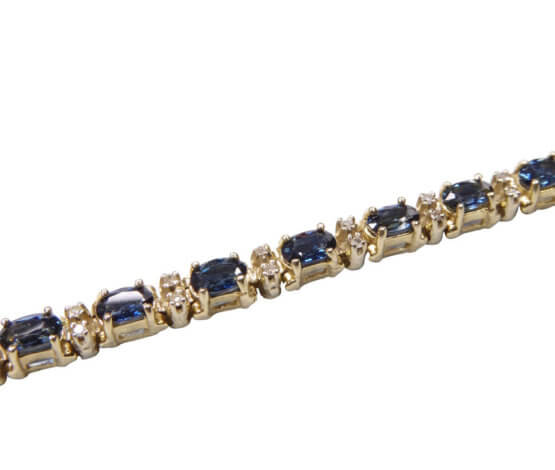 Deze 14 karaat armband diamant en saffier is een prachtig sieraad.