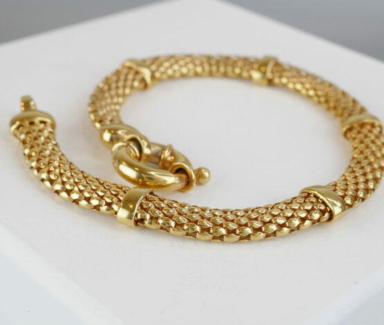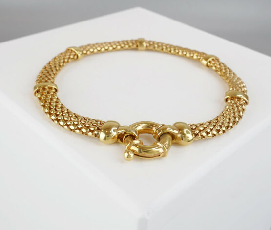 De 14 karaat gouden geweven armband is een prachtig sieraad om te dragen.
