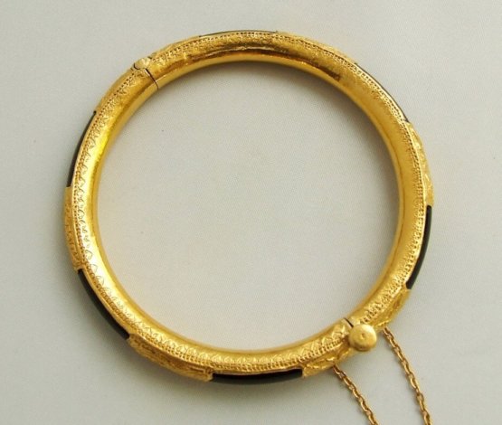 De 23 karaat gouden armband met onyx is een prachtig en uniek sieraad.