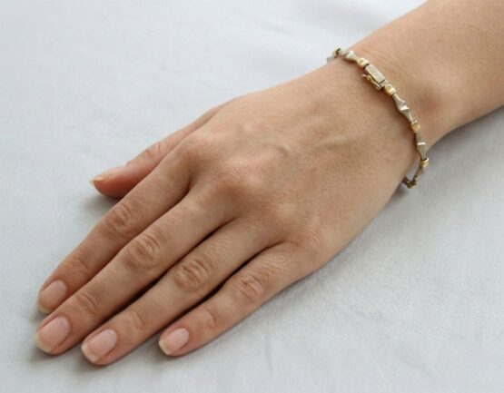 Bent u een liefhebber van geel goud én wit goud? Juwelier Christian heeft de mooiste bicolor sieraden. Onze collectie bicolor sieraden is zeer uitgebreid. De 14 karaat bicolor armband is bijzonder vanwege het mooie contrast van kleuren. In de natuur komt goud alleen als geel goud voor. Het ontstaan van wit goud gebeurt na een speciaal arbeidsproces waarin zilver, nikkel of palladium wordt toegevoegd aan puur geel goud. Deze 14 karaat bicolor armband heeft een schitterende geel- en wit gouden afwerking.