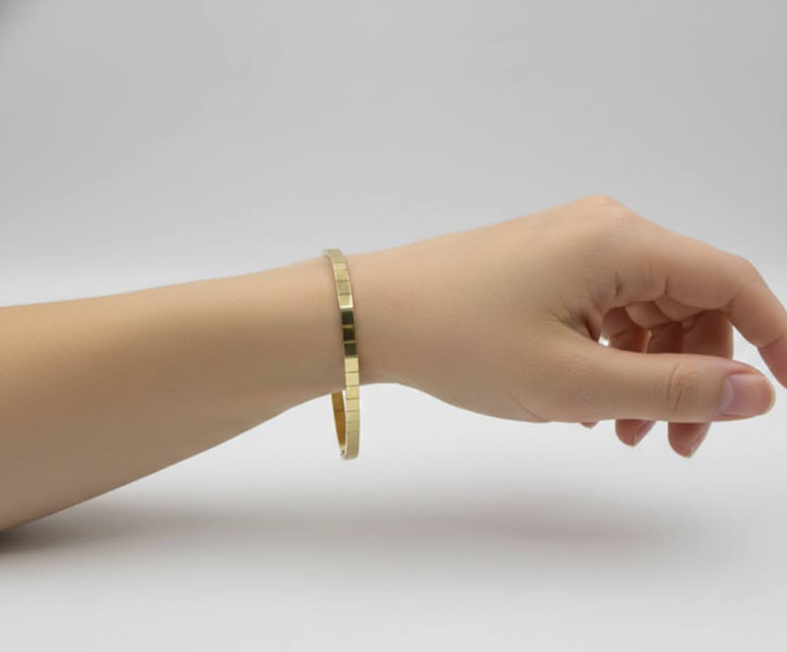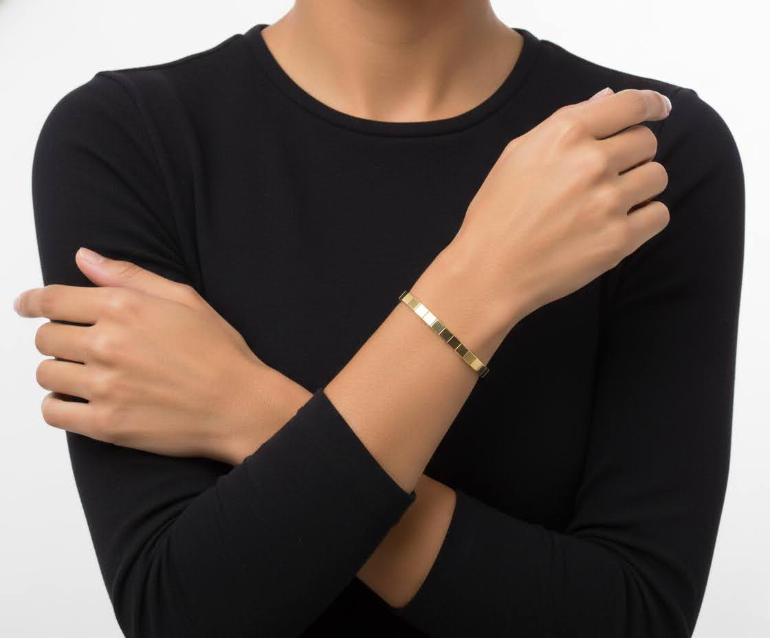 De geel gouden omega armband is een prachtig sieraad om te dragen.