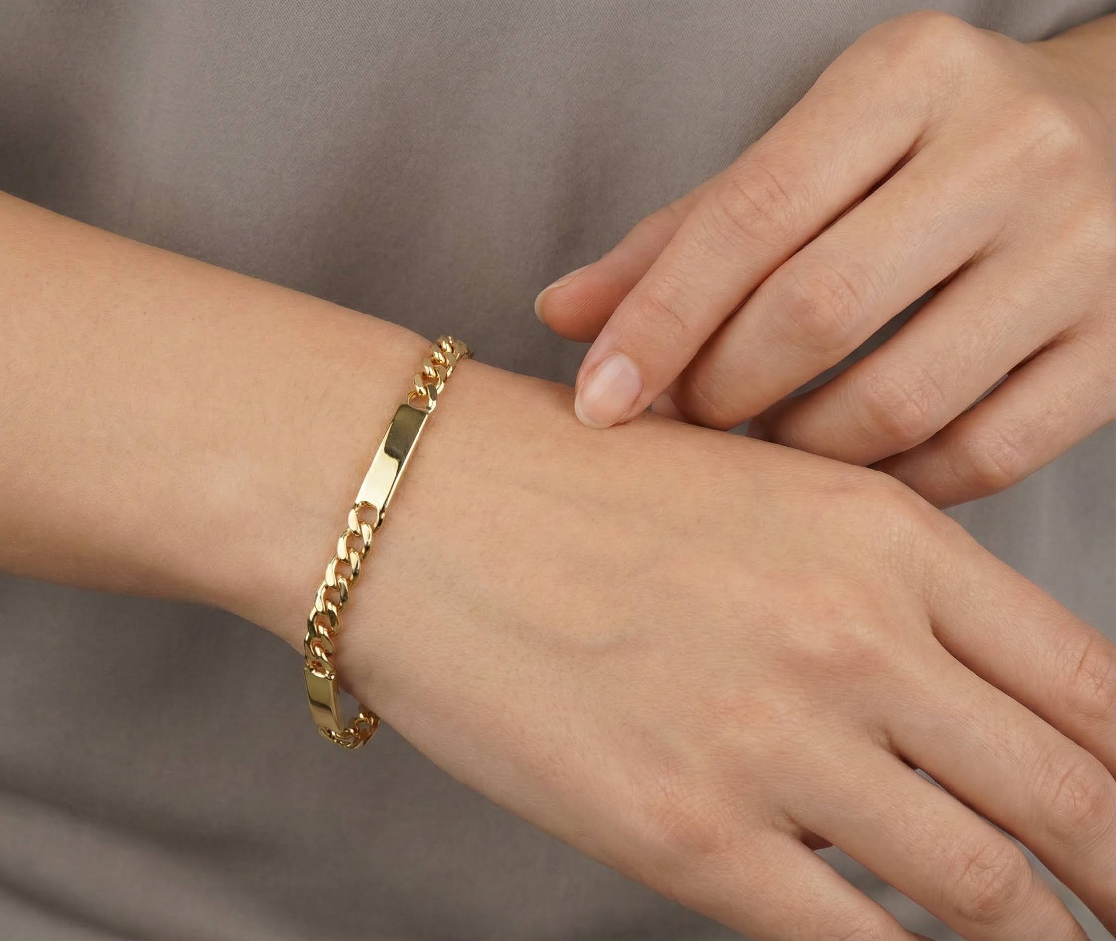 De gouden armband met platen is een prachtig sieraad om te dragen.