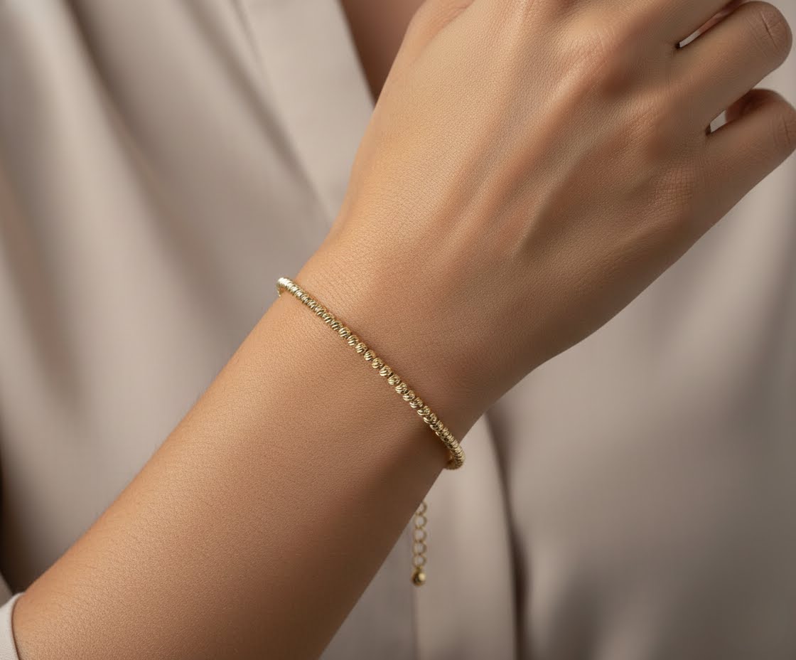 De gouden Christian balletjes armband is een prachtig sieraad om te dragen.