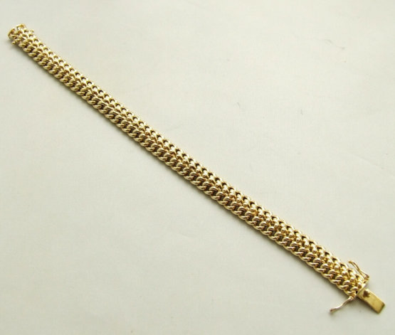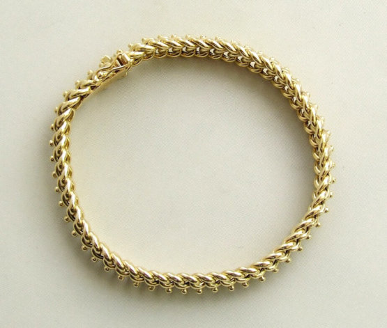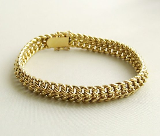 De gouden gevlochten armband is een prachtig sieraad om te dragen.