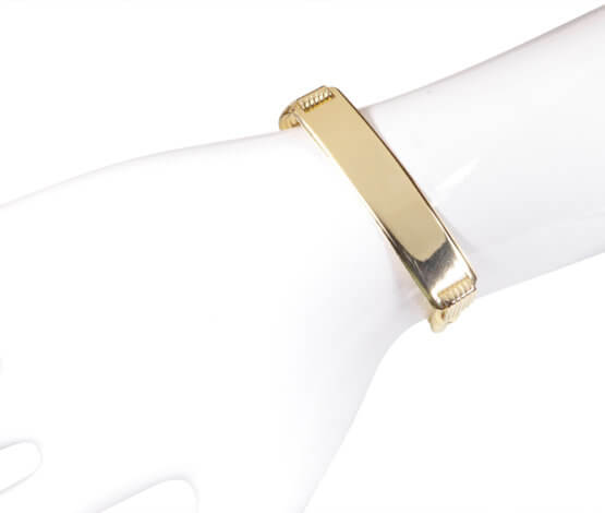 De gouden armband met naamplaat is een prachtig sieraad om te dragen.