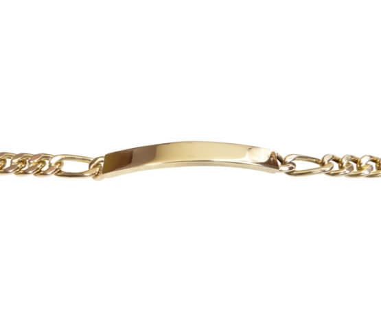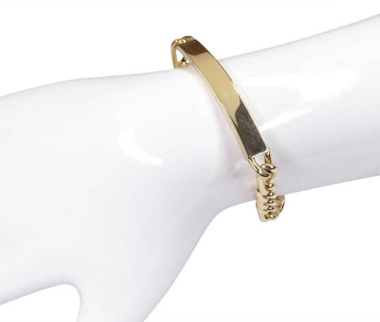 De geel gouden naamplaat armband is een prachtig sieraad om te dragen.