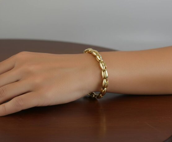 De gouden schakelarmband is een prachtig sieraad om te dragen.