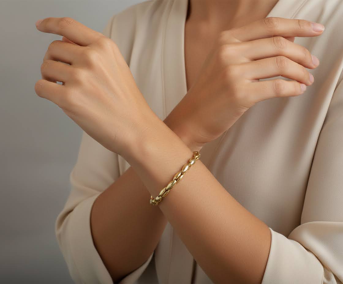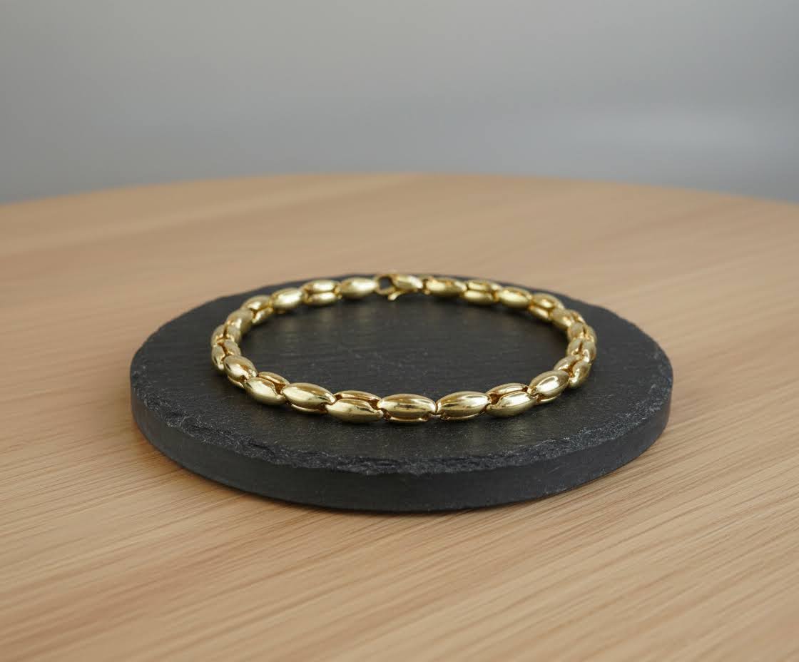 De gouden schakelarmband is een prachtig sieraad om te dragen.