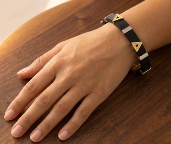 De rubberen en bicolor gouden armband is een prachtig sieraad om te dragen.