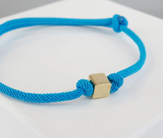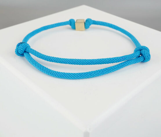 Houdt u van touw armbanden? Bestel uw blauwe armband met gouden kubus direct via atelierchristian.nl!