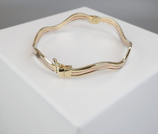 Houdt u van geel, rosé én wit goud? Juwelier Christian heeft de mooiste tricolor sieraden. Onze collectie tricolor sieraden is zeer uitgebreid. De 14 karaat tricolor slavenarmband is bijzonder vanwege het mooie contrast van kleuren. Tricolor combineert de schoonheid en aantrekkingskracht van de drie goud kleuren. Deze 14 karaat tricolor slavenarmband heeft een schitterende geel-, rosé en wit gouden afwerking.
