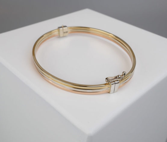 De gouden tricolor slavenarmband vlak model is een prachtig sieraad om te dragen. Slavenarmbanden zijn zeer populair.