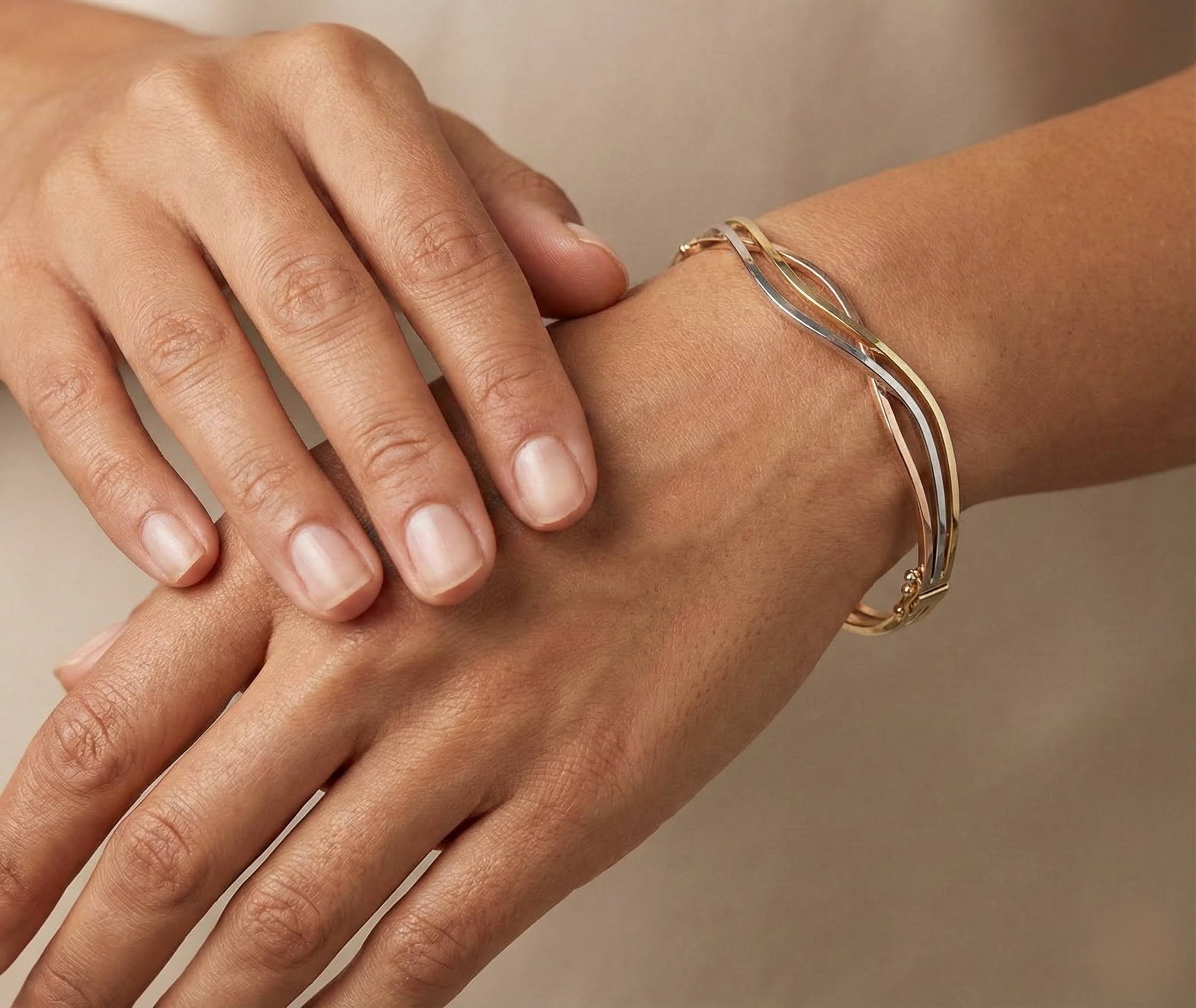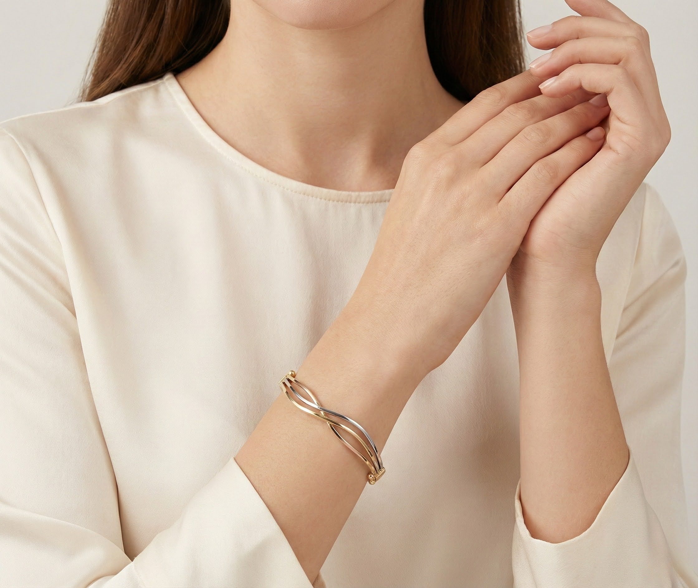 De tricolor gouden slavenarmband is een prachtig sieraad om te dragen. Slavenarmbanden zijn zeer populair.