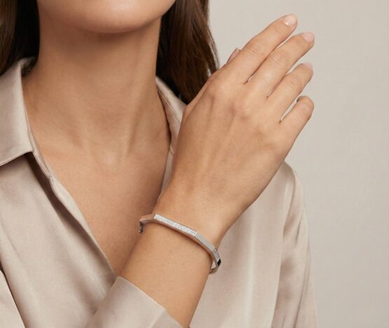 De 14 karaat wit gouden armband is een prachtig sieraad om te dragen.