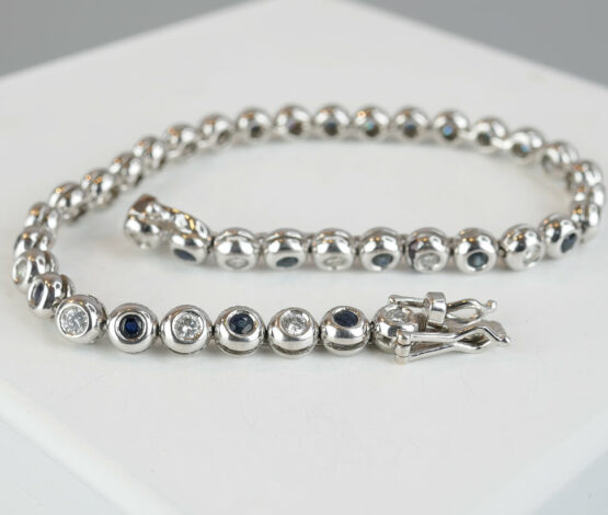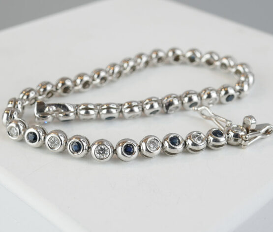 De saffier en diamant tennis armband is een prachtig sieraad om te dragen. Deze tennisarmband is bezet met diamanten.