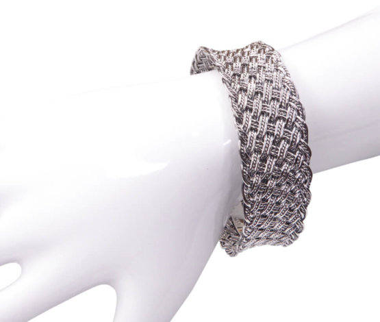 Deze zilveren klemarmband geweven is een prachtig sieraad. Zilveren klemarmbanden zijn zeer gewild.
