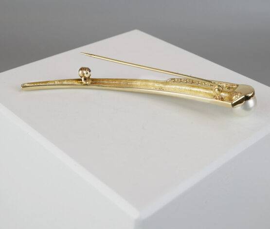 Draag deze gouden broche met cultivé parel vandaag nog en schitter met dit mooie sieraad.