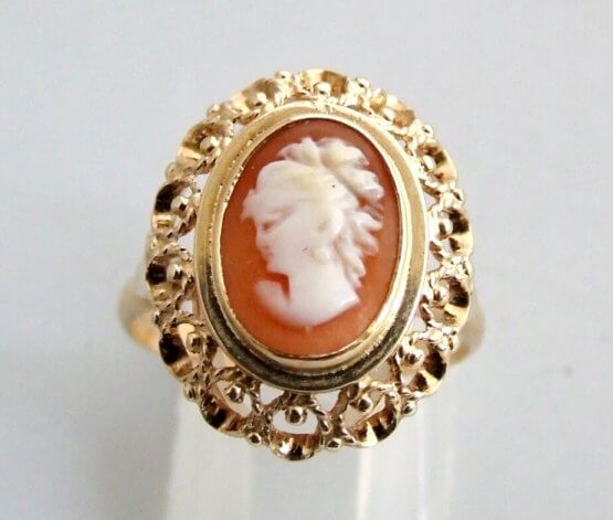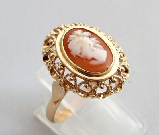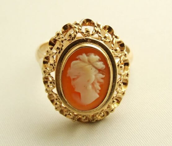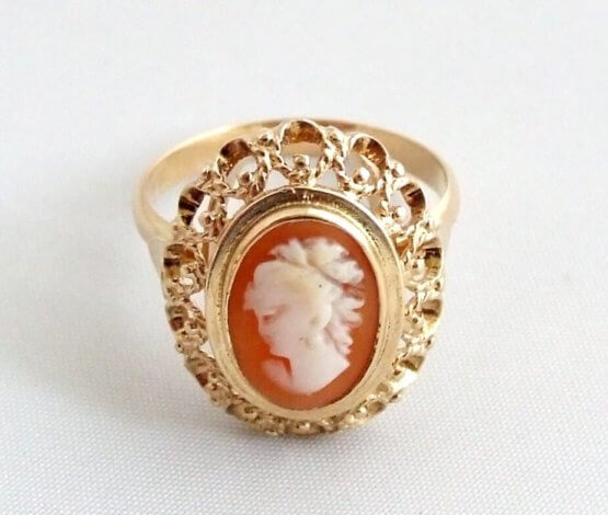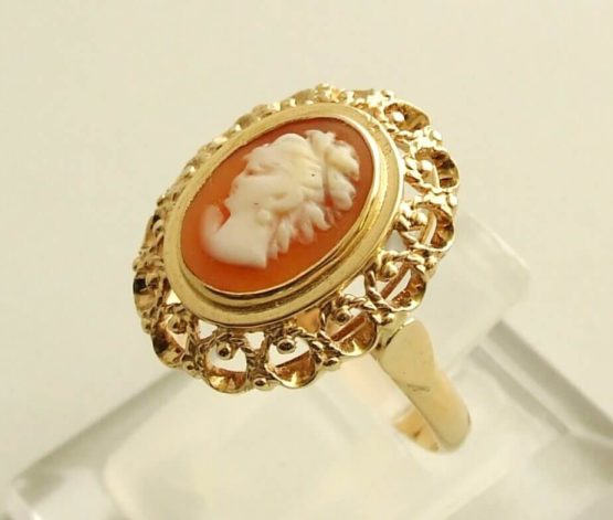 De geel gouden ring met camee is een prachtig sieraad om te dragen.