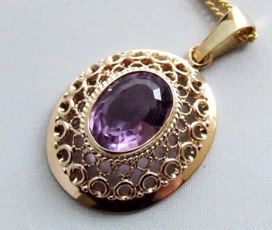 De paarse amethist is een wondermooi bergkristal met sporen van verschillende metalen zoals titaan en ijzer. Sieraden met amethist worden vaak aan geliefden geschonken, omdat de afwisselende blauw-paarse en rood-paarse kleuren van het kristal harmonie uitstralen. Deze eigenschap van de amethist heet flèches d’amour.