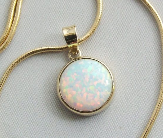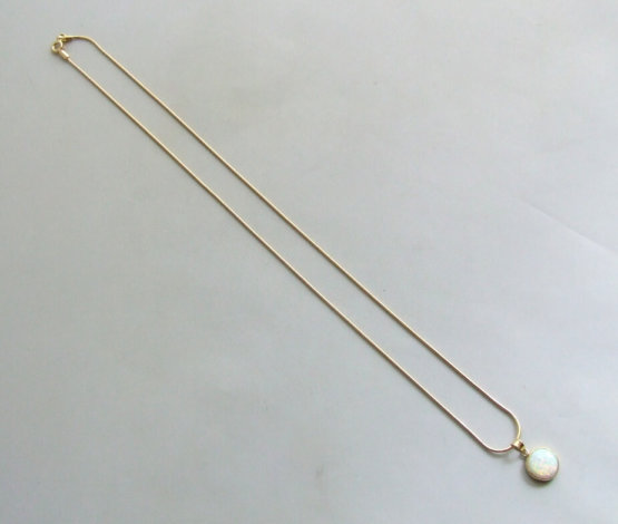 De gouden collier met opaal hanger is een prachtig sieraad om te dragen. Het gouden slot is een magneet slot.