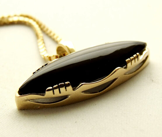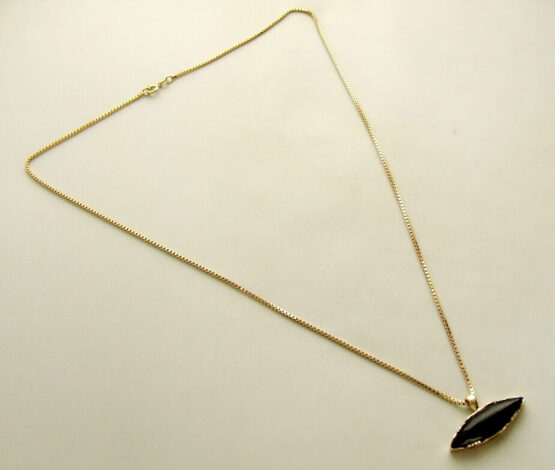 Deze gouden collier met onyx hanger is een prachtig sieraad om te dragen.