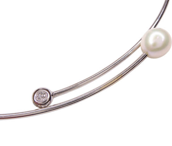 De wit gouden spang met diamant en parel is een prachtig sieraad.