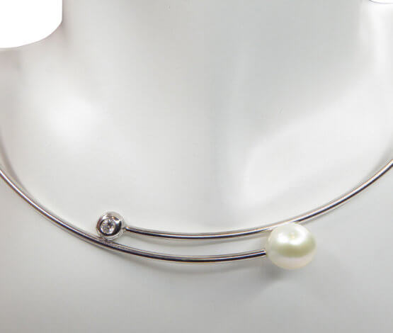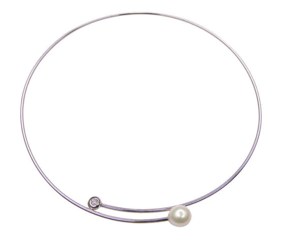 Draagt u graag wit gouden colliers? Bestel uw Christian 14 karaat wit gouden spang met diamant en parel direct via atelierchristian.nl!