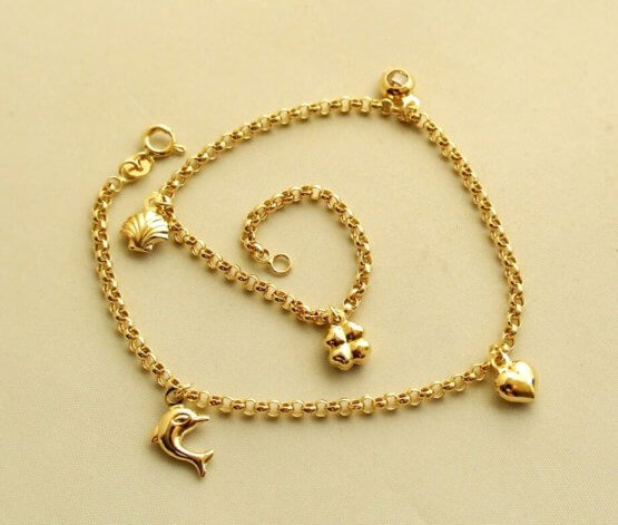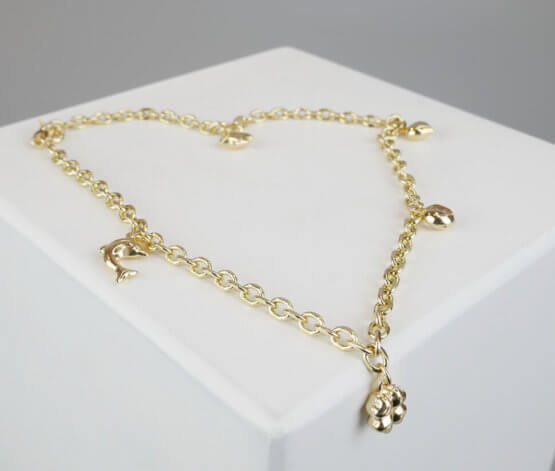 De gouden bedeltjes enkelband is een prachtig sieraad om te dragen.