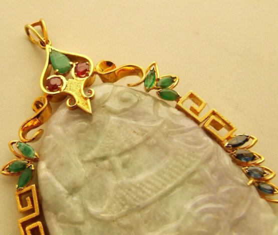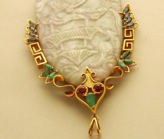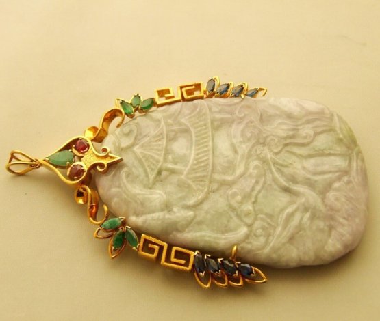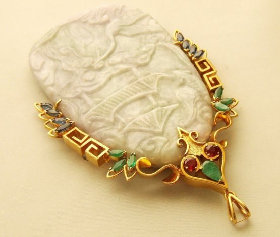 Deze 18 karaat geel gouden hanger met jade is een prachtige sieraad om te dragen.