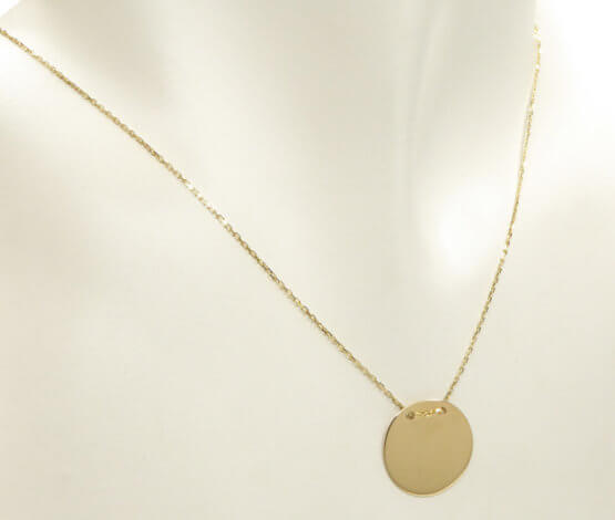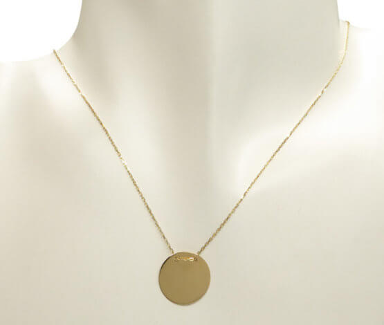 Deze geel gouden ketting met ronde hanger is een prachtig sieraad om te dragen.