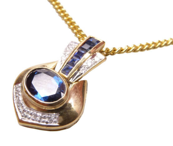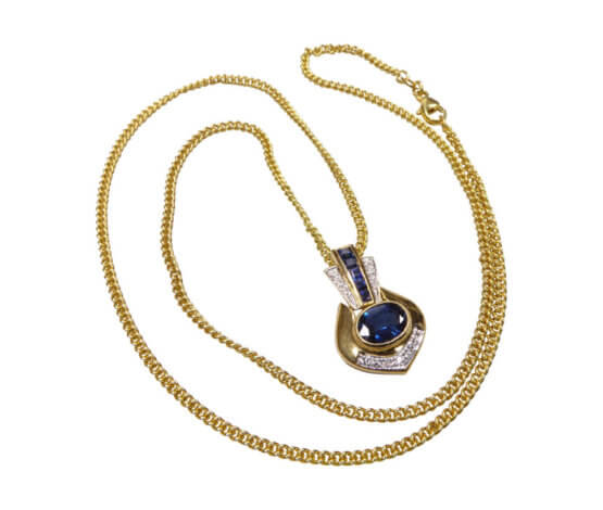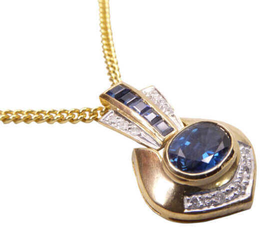 Draagt u graag geel gouden hangers? Bestel uw 18 karaat geel gouden collier met saffier hanger direct via atelierchristian.nl!