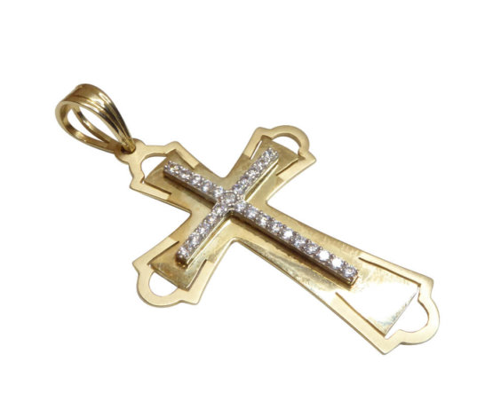 14 karaat bicolor gouden kruis met zirkonia