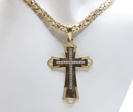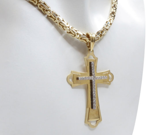 Ketting is niet inbegrepen. Bijpassende kettingen zijn beschikbaar voor deze gouden kruis. Vraag naar de mogelijkheden. Mail of bel ons!
