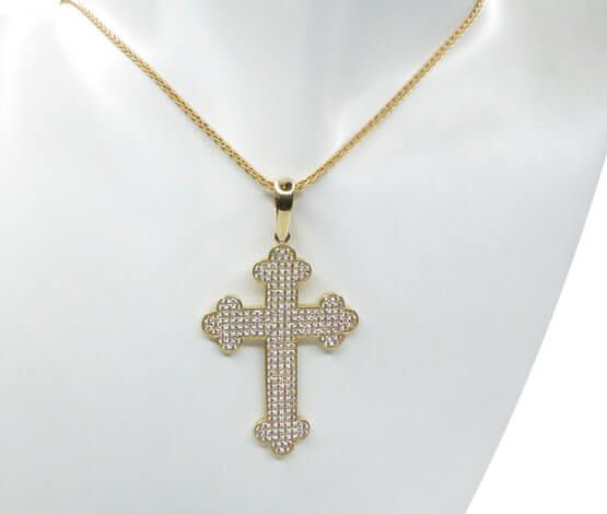 Bijpassende kettingen zijn beschikbaar voor deze gouden kruis. Vraag naar de mogelijkheden. Mail of bel ons!