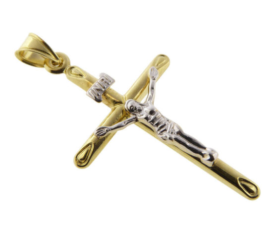 Deze bicolor gouden Christus kruis is een prachtig sieraad om te dragen.