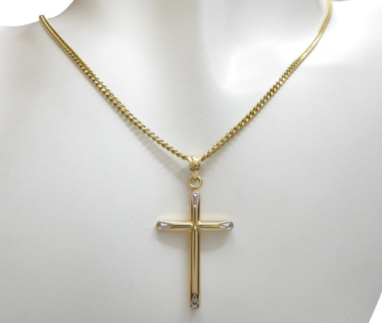 Deze bicolor gouden holle kruis is een prachtige sieraad om te dragen.